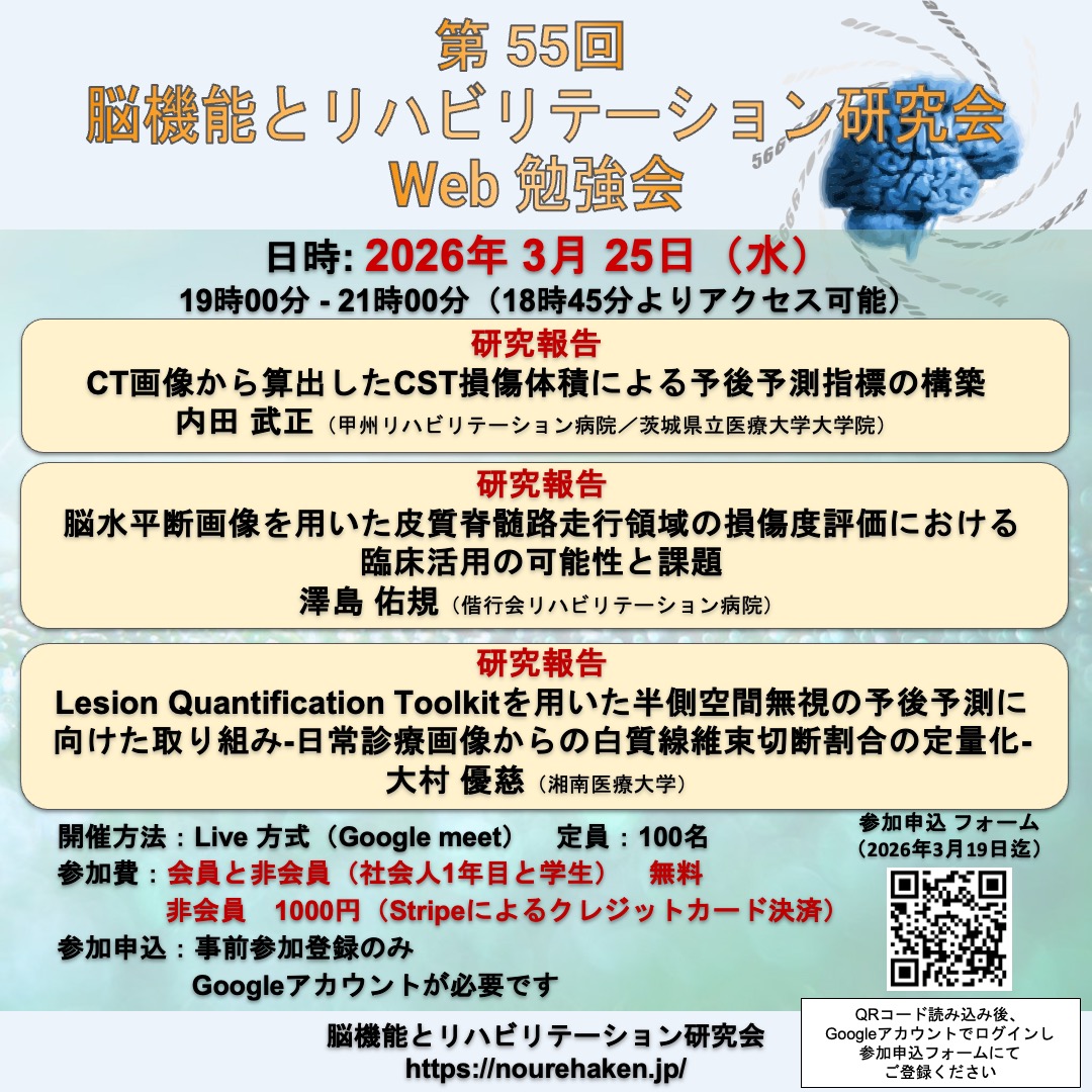是非,脳リハ研Web勉強会 にて,皆様の現場でのご経験を情報共有して頂けますと幸いです.どうぞよろしくお願い申し上げます.